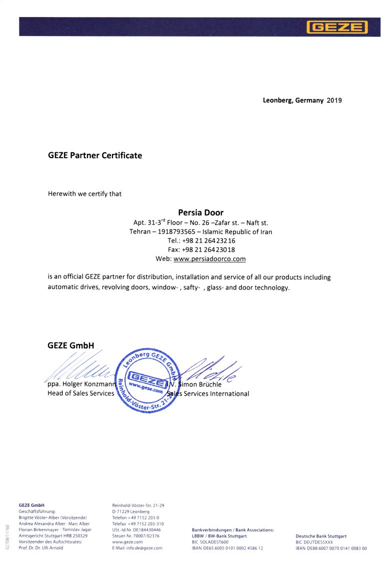 شرکت درب اتوماتیک پرشیا با حفظ ثبات در کیفیت خدمات و محصولات، همواره نسبت به تحولات و بازارهای جدید کنجکاو و پویا است